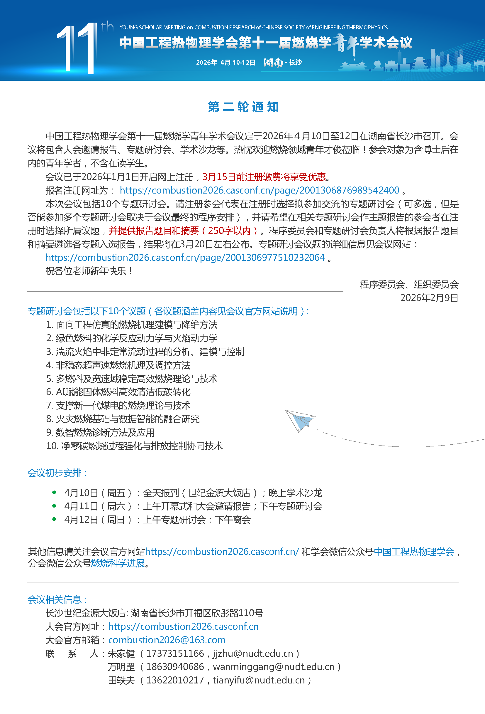 第十一届燃烧学青年学术会议会议通知(第二轮)